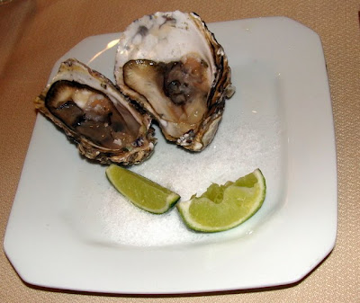 A entrada: Ostras Frescas com Limão e Flor de Sal... para acompanhar foi servido o gostoso e elegante Espumante Cave Geisse Brut Nature.